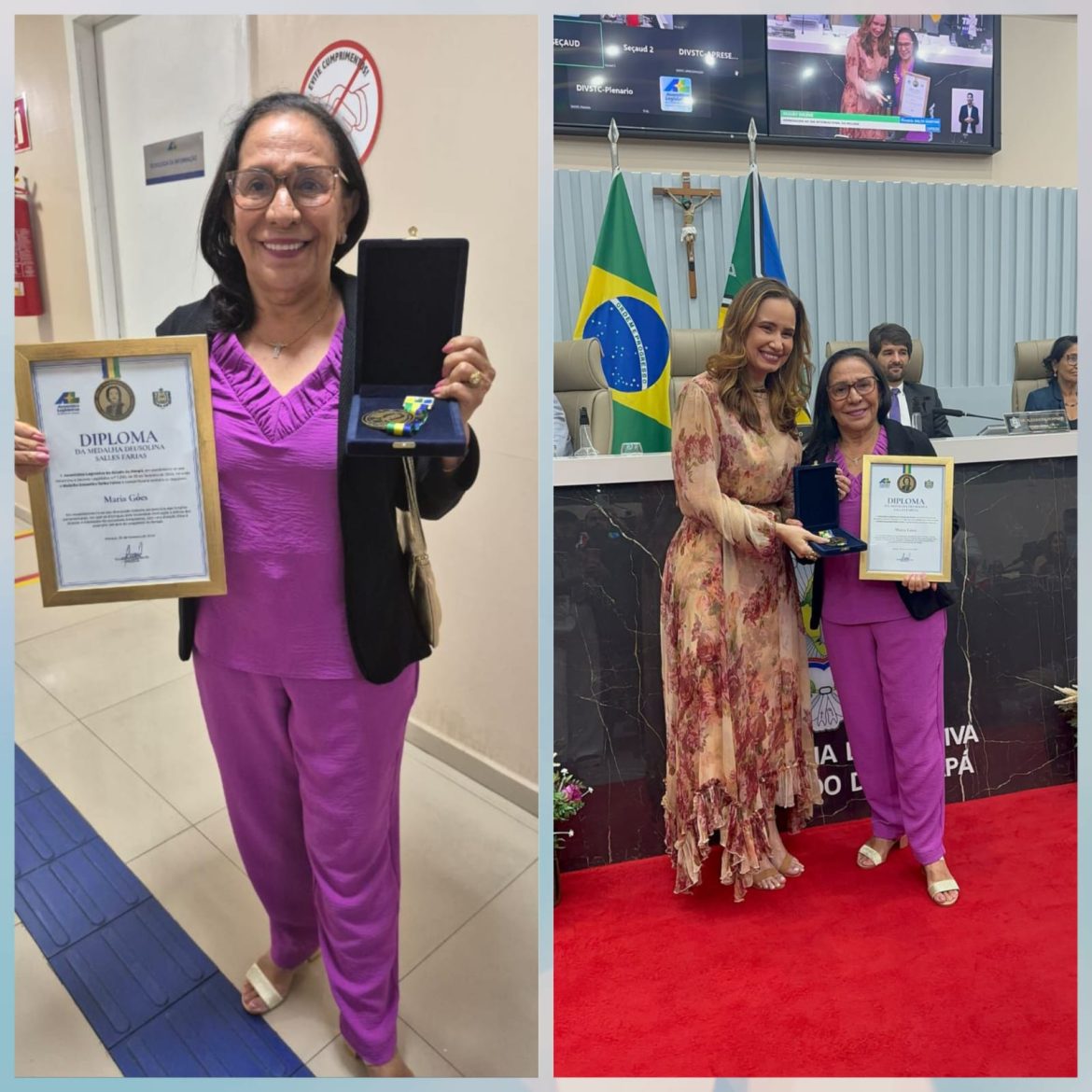 Nesta quinta-feira (13), a ex-deputada estadual Maria Góes foi uma das personalidades homenageadas durante a sessão solene na Assembleia Legislativa do Amapá, em celebração ao Dia Internacional da Mulher. A honraria recebida por ela foi a comenda Deosolina Salles Farias, que reconhece mulheres com atuação destacada no desenvolvimento do Estado, tanto no passado quanto no presente.