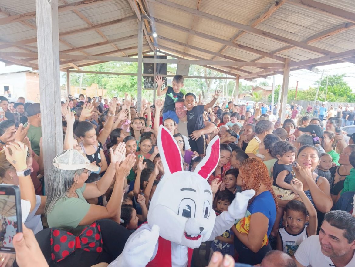 O prefeito Dr. Furlan e a primeira-dama, Dra. Rayssa Furlan, celebraram o domingo de Páscoa (13) com a entrega de centenas de chocolates para crianças do bairro Parque Aeroportuário. A ação, realizada em parceria com a associação de moradores, reuniu famílias em um momento de confraternização. Dra. Rayssa destacou o significado da data: “É tempo de renascimento e união”.