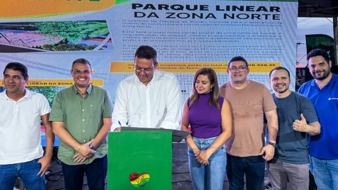 Nesta sexta-feira (2), o prefeito de Macapá, Dr. Furlan, assinou a ordem de serviço para a construção do primeiro Parque Linear da capital, que será implantado no canteiro central da BR-210, na Zona Norte. O projeto visa requalificar o espaço urbano, promovendo mais saúde, bem-estar, lazer e valorização da região.
