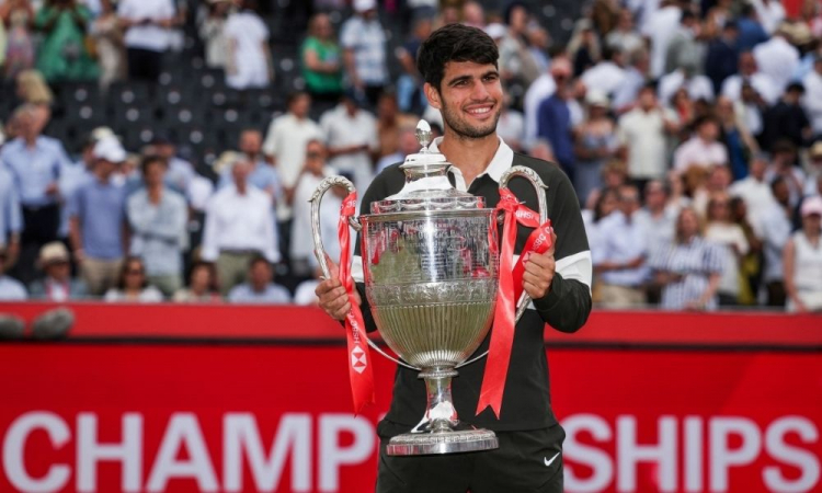 Carlos Alcaraz deu mais um importante passo em sua caminhada para voltar ao topo do ranking do tênis. Neste domingo (22), em grande batalha com o checo Jiri Lehecka, o número 2 do mundo conquistou seu terceiro troféu seguido, o quinto na temporada e o 21º da carreira, ao ganhar a decisão do Torneio de Queens, em Londres, por 2 sets a 1, com parciais de: 7/5, 6/7 (5/7) e 6/2 após 2h10. Essa é a segunda taça na grana que o espalho leva, a primeira foi em 2023. Esse novo título deixa o Alcaraz ainda mais empolgado para a defesa do título em Wimbledon, a partir do dia 30. Com a dura vitória em Queens, Alcaraz amplia sua invencibilidade pessoal para 18 jogos Ele vinha de conquistas no Masters 1000 de Roma e em Roland Garros. Apenas na grama, já são 12 triunfos seguidos. A busca pelo terceiro título consecutivo e o primeiro da temporada de grama começou bastante equilibrada para Alcaraz diante de um checo concentrado e também poderoso no serviço. Uma postura bem diferente do último encontro em Queens, em 2023, quando o espanhol venceu com facilidade. Em parcial igual até 5 a 5, então com somente um break point não aproveitado pelo número 2 do mundo, a quebra no 11º game acabou sendo decisivo para o espanhol abrir 1 a 0 sobre Lehecka com 7/5 O checo voltou melhor no segundo set e conseguiu levar a definição ao tie-break, no qual fechou com 7/5, empatando a decisão. No set desempate, seria preciso concentração e força em um jogo tão parelho e de poucas oportunidades para ambos os lados. E Alcaraz mostrou que não está entre os melhores da modalidade por acaso. Foi logo abrindo vantagem de 4 a 1 com uma quebra, para encaminhar mais um a taça na seleta galeria. E com show, buscando bolas curtas, acertando winners e voleios. Com mão nas orelhas, cobrou aplauso do público. Ainda deu um susto, ao escorregar, dobrar os joelhos e terminar com a raquete quebrada. No fim, fechou com 6 a 2 em nova quebra. Visualizações 66 Anúncios