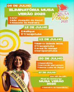 Eliminatória Musa Verão 2025 – nos Distritos do Ariri, São Joaquim do Pacuí e Abacate da Pedreira, 15h às 18h