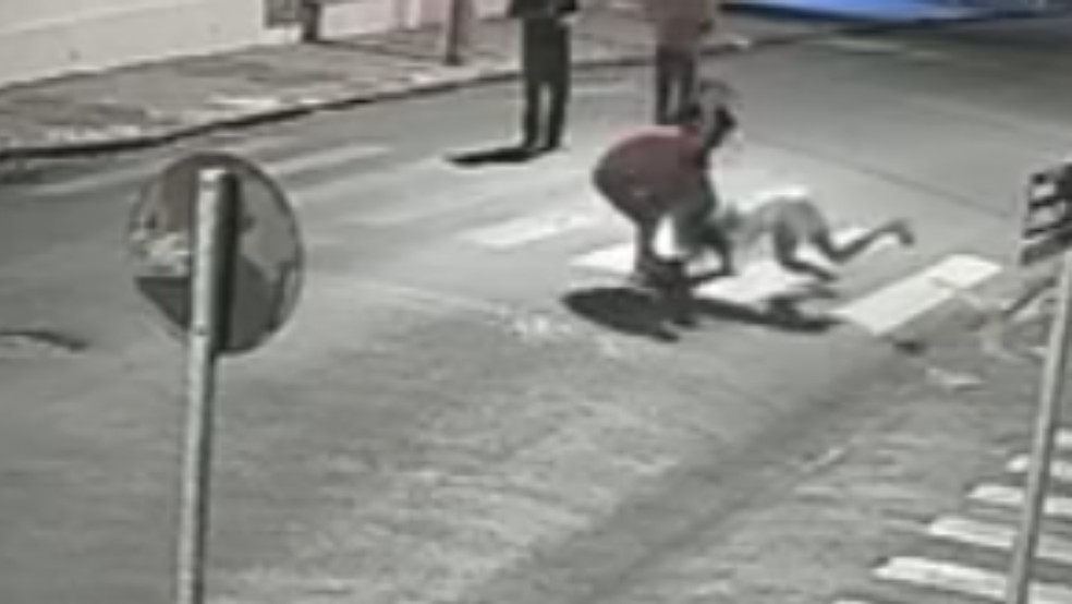 Uma jovem de 18 anos, grávida de quatro meses, foi agredida com socos, chutes e puxões de cabelo por um homem no meio da rua na madrugada de sábado (23), em General Salgado (SP). A violência começou após a mulher reclamar do motorista que passou próximo a ela e aos amigos na rua. Uma câmera de segurança registrou o crime. Pelo vídeo é possível ver que o homem desce do carro e começa a violência contra a mulher. No momento da agressão, a vítima voltava de uma lanchonete junto com dois amigos, que não ajudam a conter o suspeito. As agressões só param quando a mulher do agressor consegue segurar ele. Na sequência, ele entra no veículo e foge. O suspeito não foi localizado pela polícia. Visualizações 38 Anúncios Post navigation