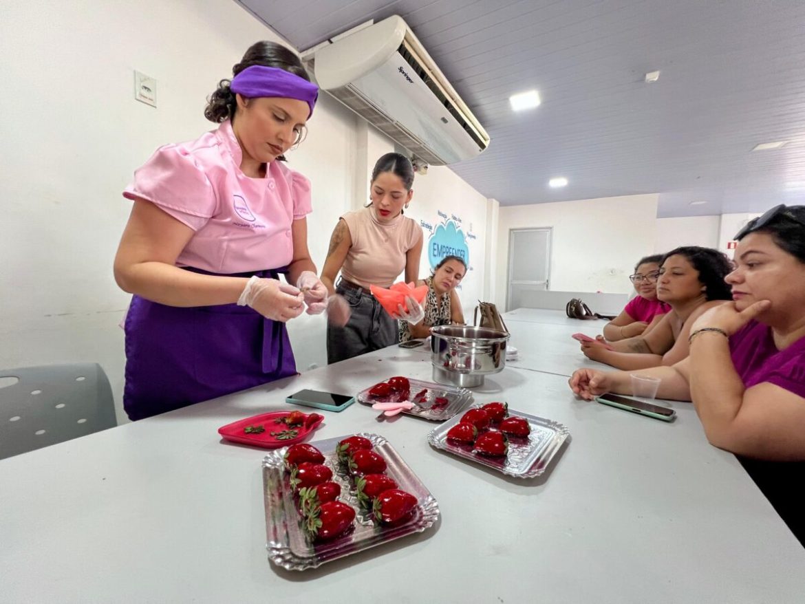 Coordenada pela Secretaria Municipal do Trabalho, Desenvolvimento Econômico e Inovação (Semtradi), a oficina foi gratuita e ensinou a produção do tradicional “morango do amor”, morangos frescos cobertos com brigadeiro de leite ninho e finalizados com calda caramelizada.