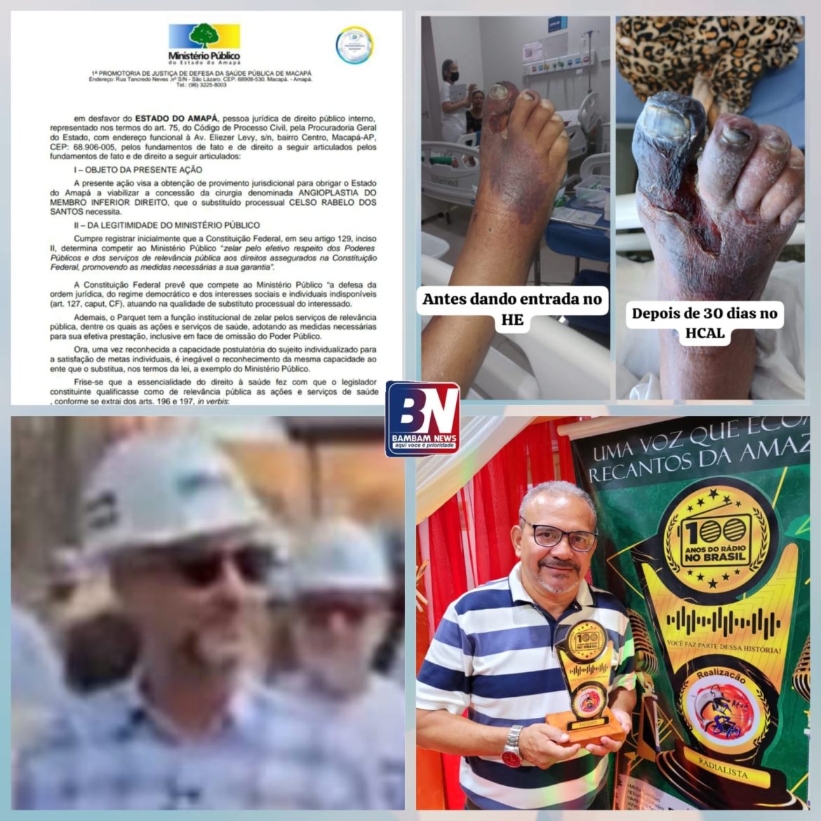 O drama do amapaense Celso Rabelo dos Santos escancara, mais uma vez, o colapso da saúde pública no Estado do Amapá. Portador de diabetes e em estado grave, ele necessita com urgência de uma cirurgia de angioplastia no membro inferior direito para evitar a amputação. Mesmo com decisão favorável do Ministério Público do Amapá (MP-AP), que ingressou com Ação de Obrigação de Fazer contra o Estado, nada foi feito até agora.