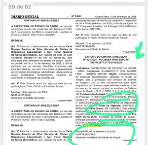 Os documentos do Diário Oficial revelam que desde 2022 a ex-gestora mantém, através da empresa Imagem Center, contratos para realização de exames de diagnóstico por imagem. O detalhe revoltante: a clínica funciona em outro município, Santana, mas recebe milhões do Estado como se fosse a grande solução da saúde pública amapaense.