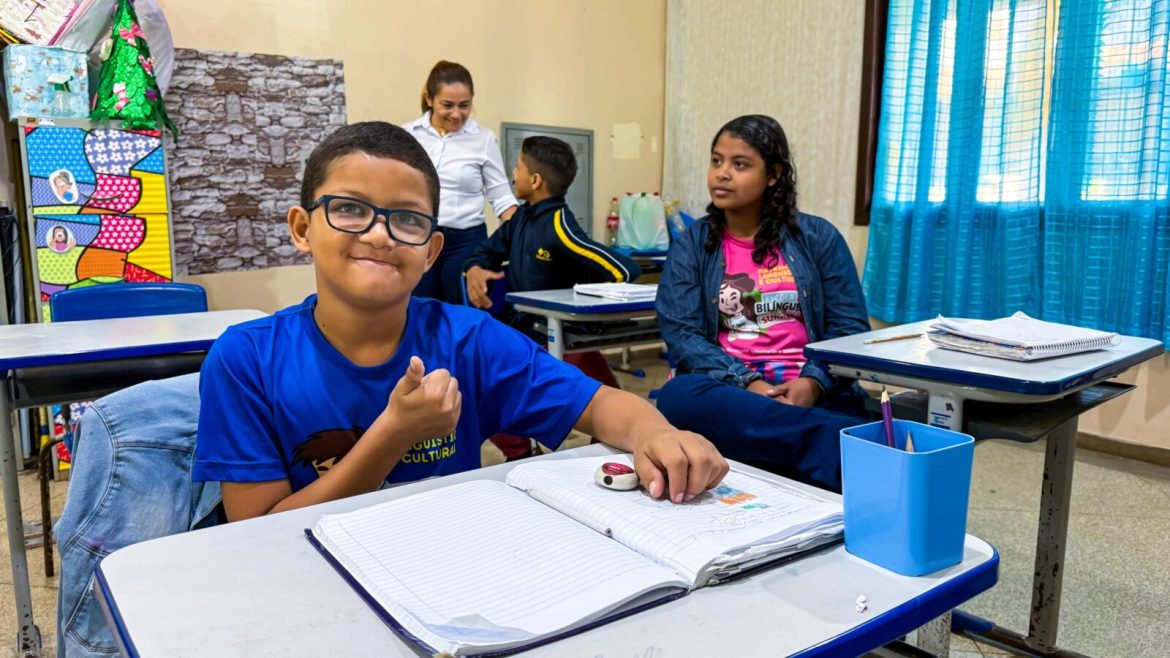 Duas professoras ensinam na Sala Bilíngue e recebem apoio de estagiárias dos cursos de Letras-Libras (Português) da Universidade Federal do Amapá.