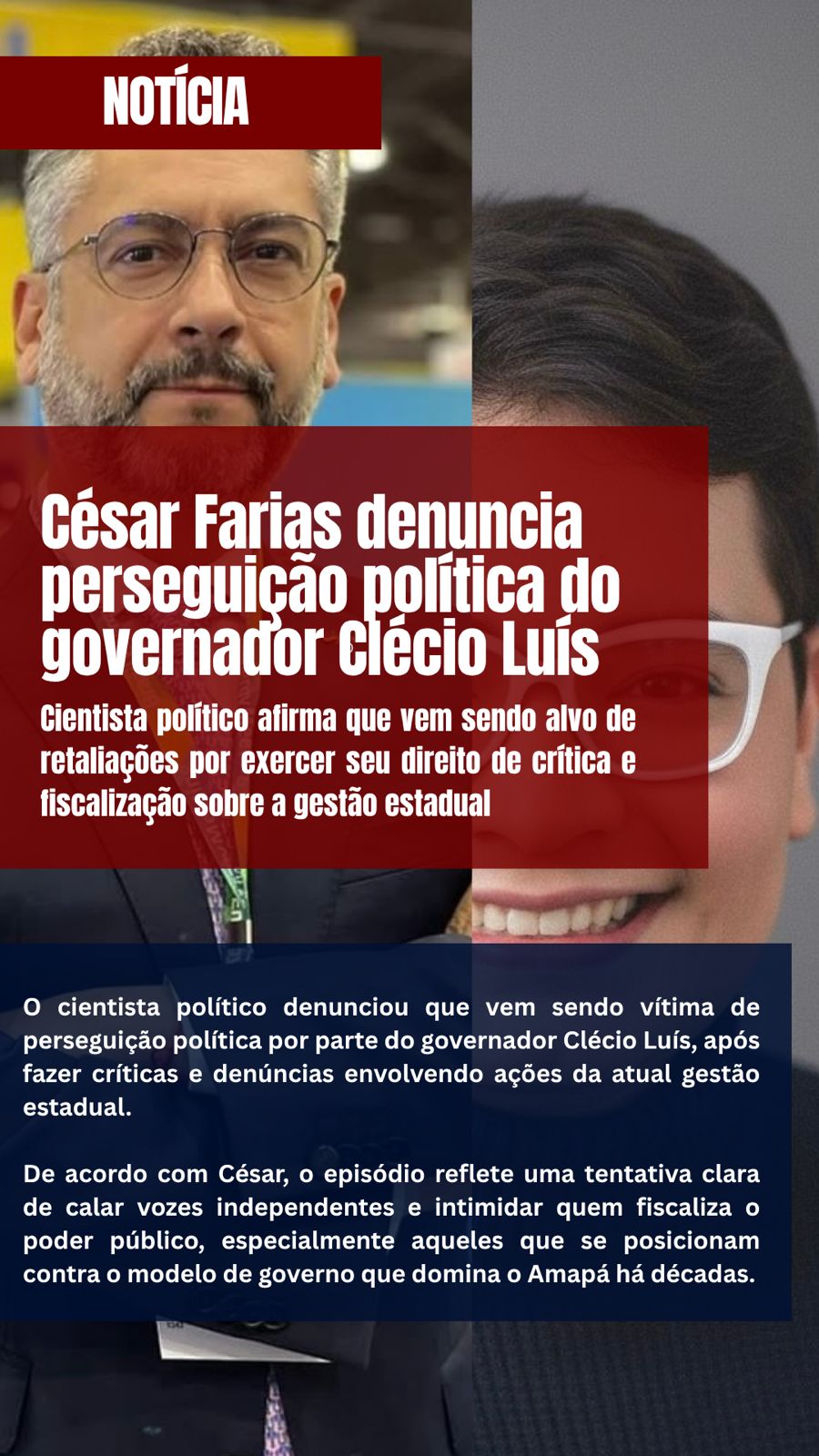 “O que enfrentamos é uma tentativa de enfraquecer quem questiona. Mas sigo firme, porque acredito que o Amapá precisa de coragem para mudar. Não é perseguição que vai me silenciar”, completou César Farias.