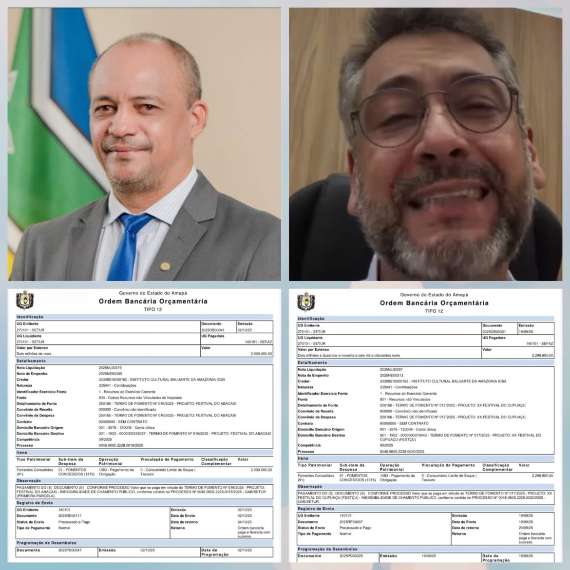 Os repasses, destinados aos projetos “Festival do Abacaxi” e “XX Festival do Cupuaçu (Festçu)”, foram realizados de forma direta, burlando a obrigatoriedade de licitação para garantir a escolha da entidade com base em critérios de isonomia e transparência. Até o momento, já foram transferidos R$ 4.296.800,00 aos cofres do Instituto Baluarte.