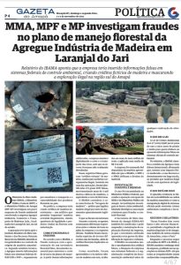 O Ministério do Meio Ambiente, o Ministério Público Federal (MPF) e o Ministério Público do Amapá (MP-AP) investigam graves irregularidades no plano de manejo florestal da Agregue Indústria e Comércio de Transporte de Madeira, sediada em Laranjal do Jari a mesma empresa que recebeu das mãos do governador Clécio Luís uma licença ambiental com direito a foto, discurso e promessa de progresso.