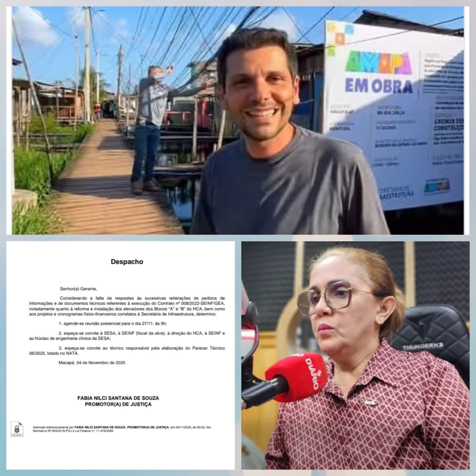 A promotora também solicitou a presença de técnicos responsáveis da SESA e SEINF, além do fiscal da obra e do profissional responsável pelo parecer técnico 06/2025, lotado no NATA.