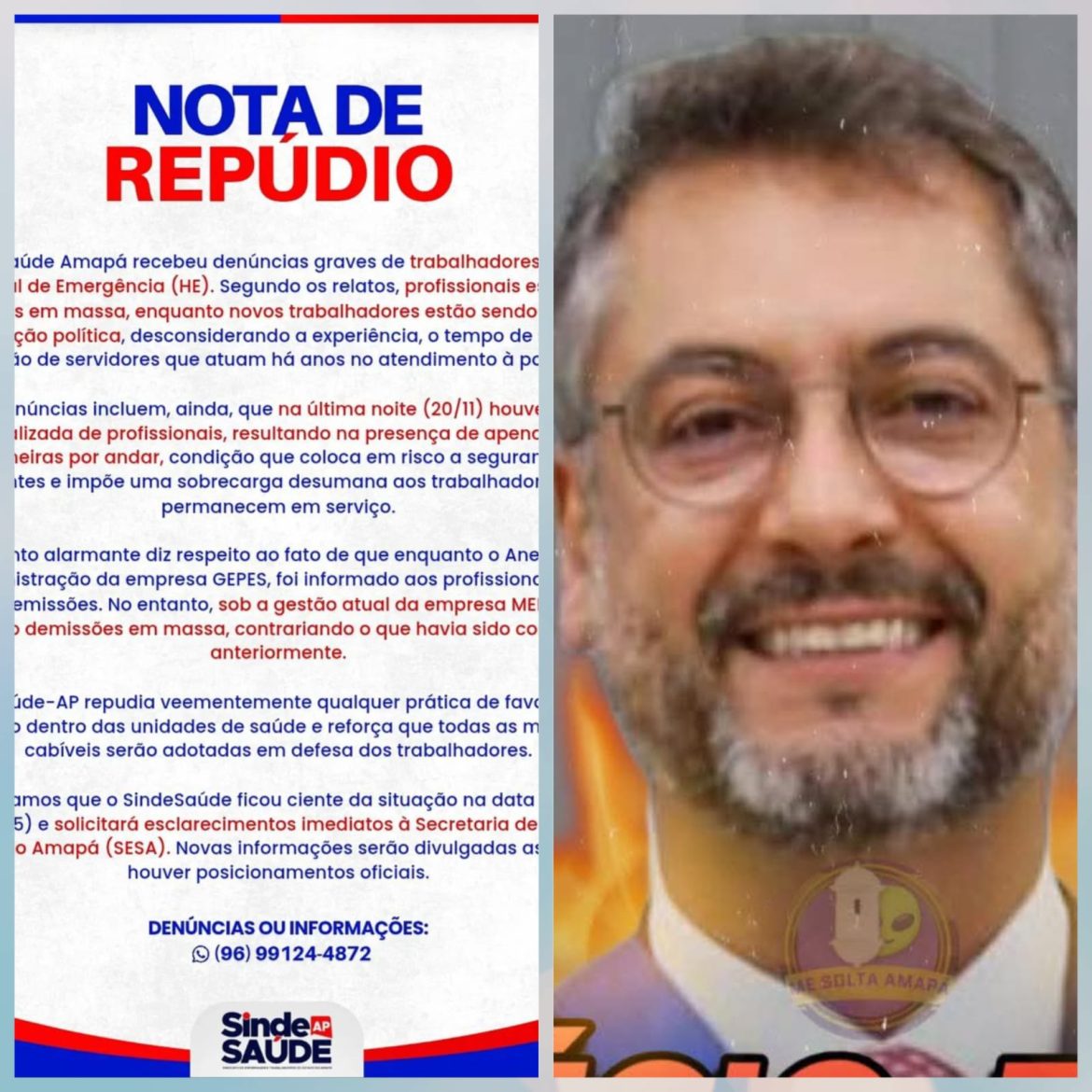 Macapá, 21 de novembro de 2025 – Uma onda de demissões em massa no Anexo do Hospital de Emergência (HE) do Amapá, supostamente acompanhada de contratações por indicação política, levou o Sindicato dos Trabalhadores em Saúde do Estado (SindeSaúde-AP) a publicar uma nota de repúdio contra a gestão da unidade. Segundo denúncias recebidas pelo sindicato, a experiência de servidores antigos está sendo ignorada em favor de um esquema de favorecimento, colocando em risco a segurança dos pacientes e a saúde dos próprios trabalhadores.