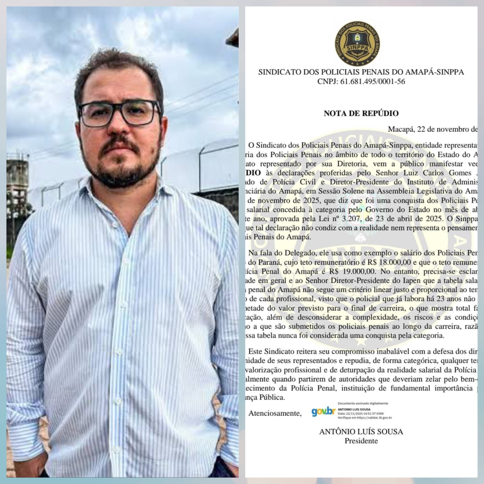A reação veio em forma de nota oficial dura publicada pelo SINPPA nesta sexta (22), que chamou a fala de “incompatível com a realidade” e acusou o diretor de distorcer os fatos ao comparar os salários do Amapá com os do Paraná.