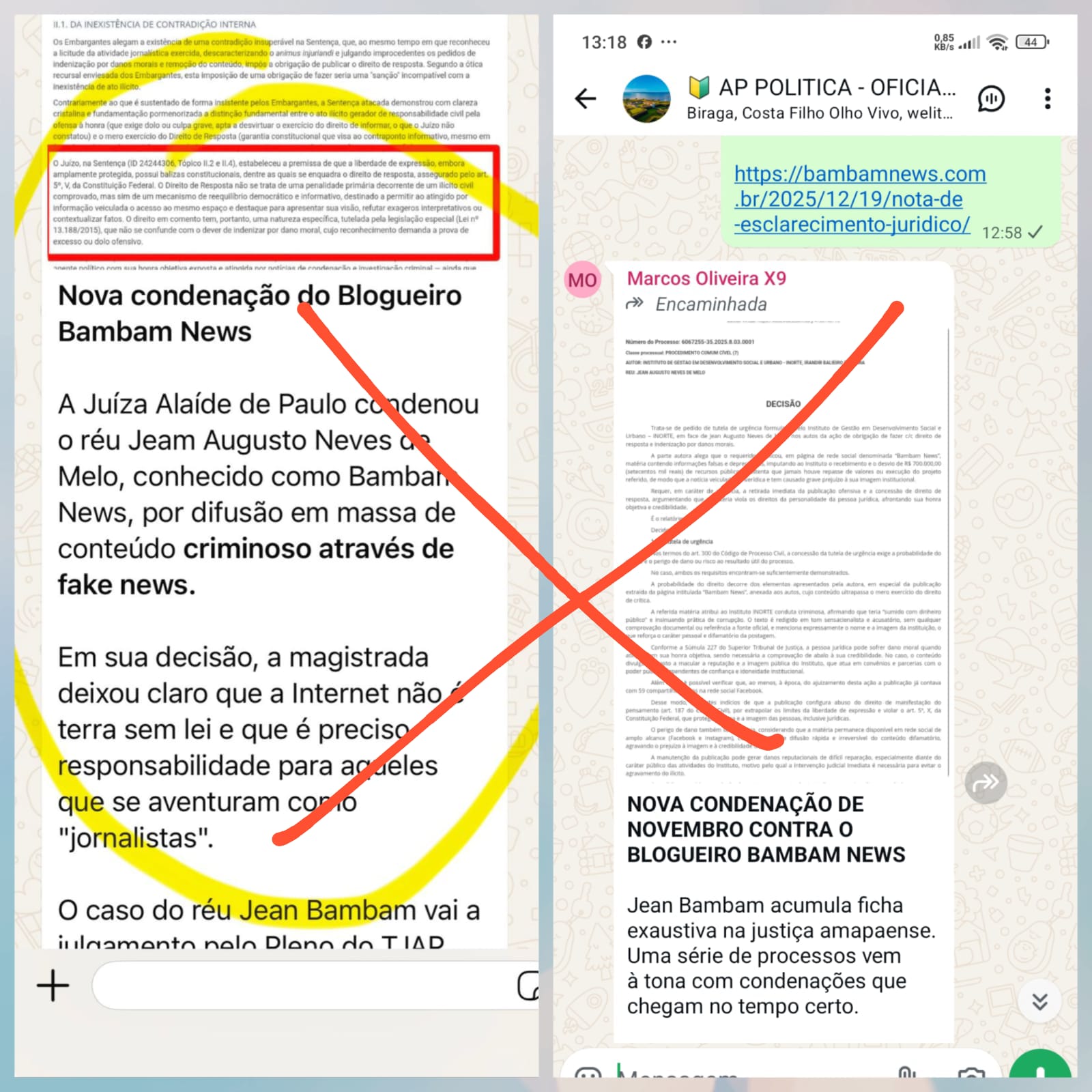 Circula de forma irresponsável e mal-intencionada a informação de que o COMUNICADOR Jean Bambam teria sido “condenado” pela Justiça do Amapá. A afirmação é falsa.