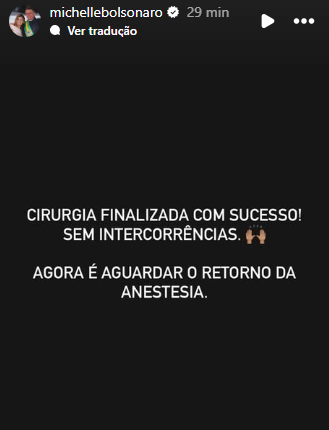 A cirurgia para correção de hérnia inguinal do ex-presidente Jair Bolsonaro (PL) foi concluída por volta das 12h50 desta quinta-feira (25) e ocorreu sem intercorrências, segundo a ex-primeira-dama Michelle Bolsonaro. O procedimento durou cerca de quatro horas, conforme previsão médica, e havia sido autorizado na última segunda-feira (23) pelo ministro Alexandre de Moraes, do Supremo Tribunal Federal (STF). Durante a internação, Bolsonaro terá como principal acompanhante Michelle Bolsonaro e poderá receber visitas dos filhos, também autorizadas pelo STF. Post Views: 1 Anúncios Post navigation