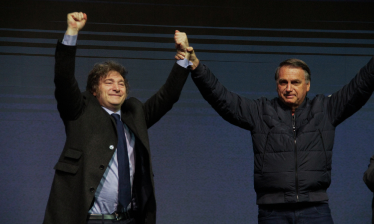 milei-compartilha-post-de-flavio-bolsonaro-lendo-carta-do-pai-sobre-pre-candidatura