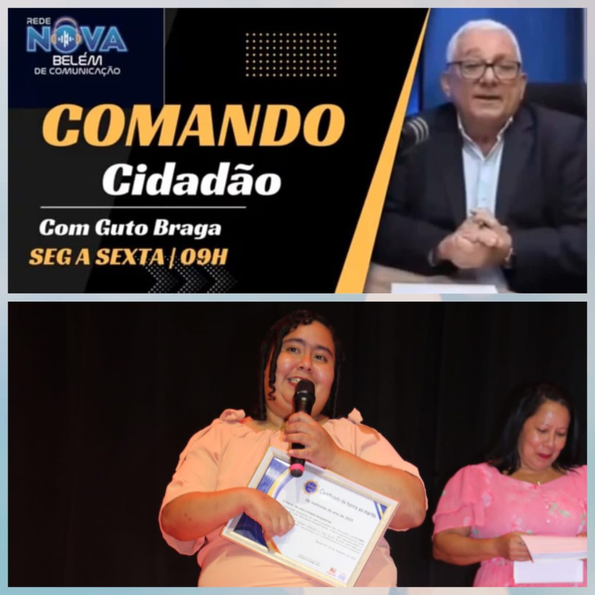 Entre as categorias que mais mobilizaram o público, a de Destaque da Comunicação 2025 teve um vencedor com uma história singular: o jornalista Guto Braga, apresentador do “Comando Cidadão”, veiculado pela Rede Nova Belém. O prêmio não homenageou apenas a qualidade do trabalho, mas também sua função social única: levar informações do Amapá diretamente para os milhares de amapaenses que residem no estado do Pará, especialmente na região metropolitana de Belém.