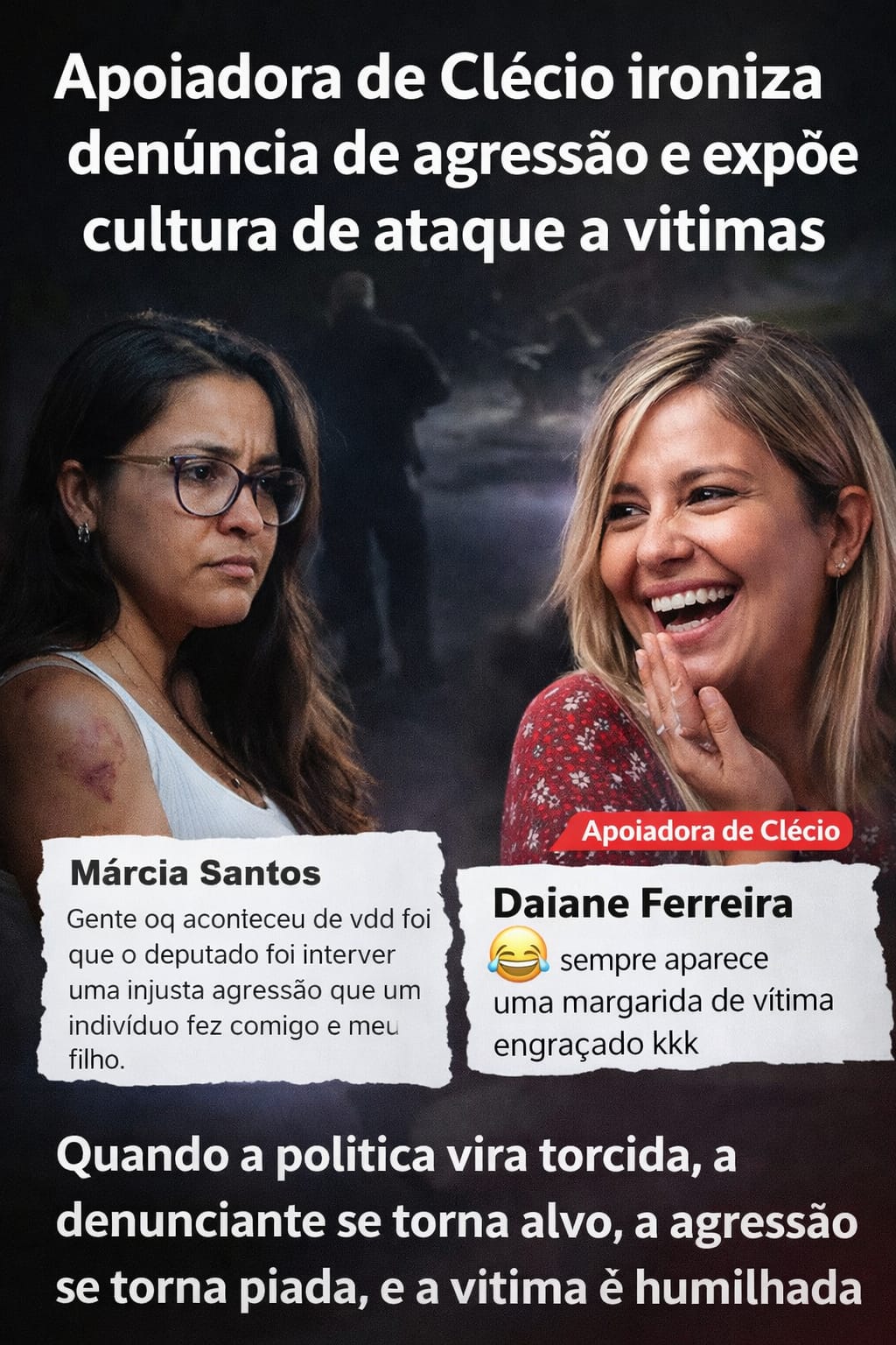 Uma apoiadora do governador Clécio Luís utilizou as redes sociais para tentar desqualificar o relato de uma mulher que afirmou ter sido vítima de agressão. Em vez de defender apuração dos fatos e respeito à denunciante, a comentarista Daiane Ferreira optou pelo deboche, ironizando a condição de vítima e tratando um episódio grave como “mimimi”.