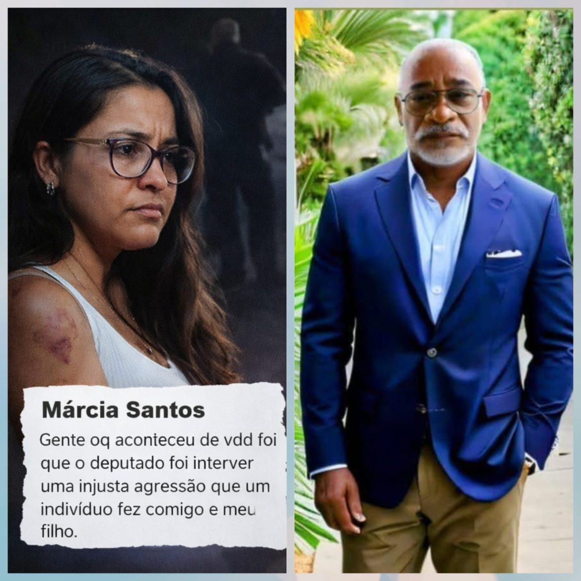 A mulher, identificada como Márcia Santos, reagiu afirmando que foi, sim, vítima da agressão e que está disposta a buscar a Justiça para comprovar o ocorrido. Em resposta às insinuações, ela classificou a postura do comentarista como julgamento precipitado e desumano, reforçando que ele sequer a conhece.