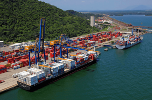 Guindastes, armazéns e pátios logísticos