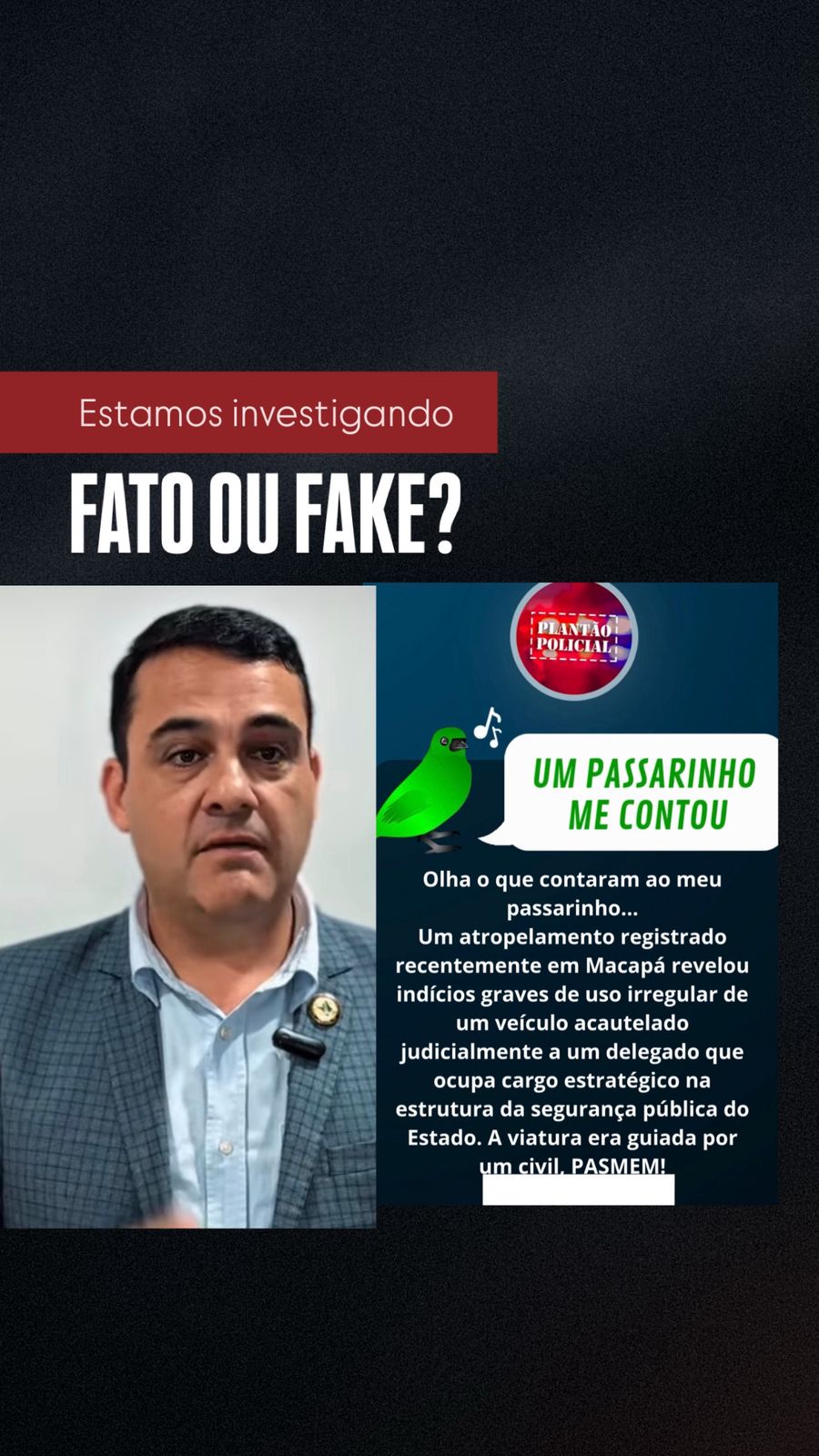 Informações preliminares indicam que uma viatura descaracterizada da Polícia Civil do Amapá, supostamente vinculada à cautela do Delegado-Geral da instituição, Cezar Vieira, pode ter sido utilizada de forma indevida.