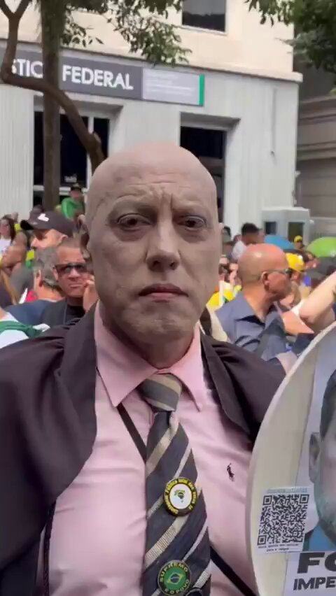 Anúncios Imagens: Fraga Alves/Especial Metrópoles Durante a manifestação realizada na Avenida Paulista na tarde deste domingo (1º/3), um homem chamou a atenção ao se fantasiar como o ministro Alexandre de Moraes, do Supremo Tribunal Federal (STF). Vestido com uma toga preta e maquiagem que simulava a aparência do magistrado, o manifestante utilizava fraldas e carregava tampas de vaso sanitário como molduras para fotos dos ministros Alexandre de Moraes e Dias Toffoli. Os cartazes fixados no objeto pediam “Fora, impeachment já” e classificavam o STF como “fábrica de fake news”. A manifestação “Acorda Brasil” foi convocada pelo deputado federal Nikolas Ferreira (PL-MG) e pelo pastor Silas Malafaia, e também acontece em outras capitais brasileiras. O ato deste domingo é o primeiro desde a prisão do ex-presidente Jair Bolsonaro (PL) na Papudinha, em Brasília, e da escolha do senador Flávio Bolsonaro como pré-candidato à Presidência da República pelo campo bolsonarista. Metrópoles Post Views: 49 Anúncios Post navigation