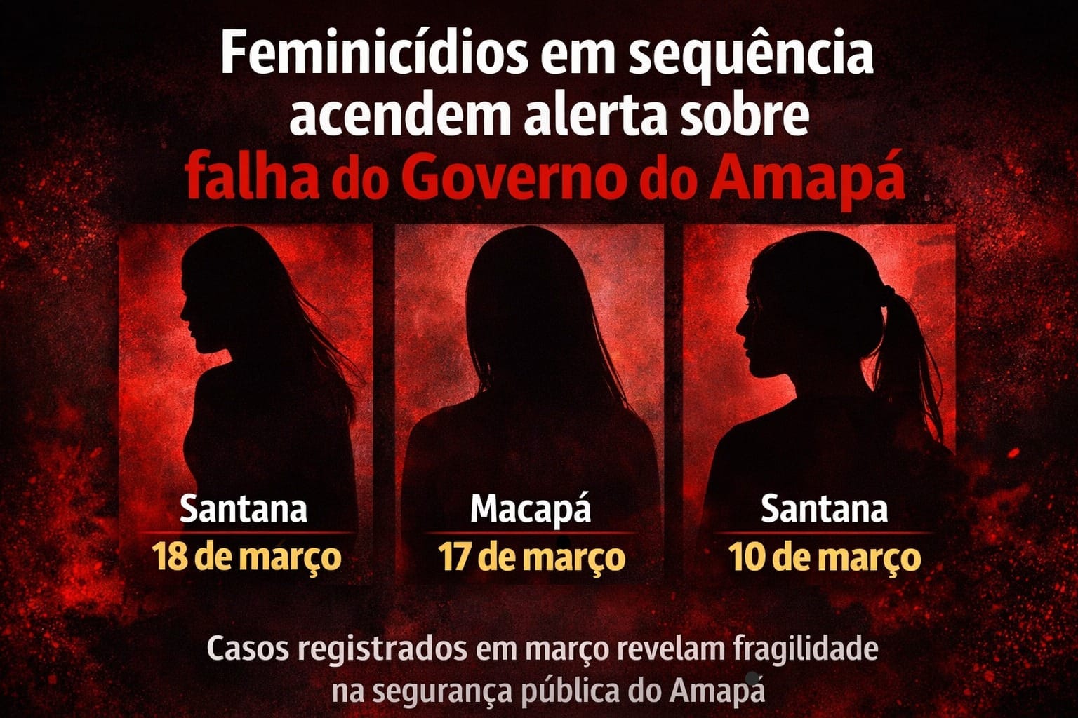 A sucessão de casos de feminicídio registrados em março de 2026 no Amapá acendeu um alerta grave sobre a efetividade das políticas públicas de segurança voltadas às mulheres no estado. Em um intervalo de poucos dias, crimes com características semelhantes foram registrados em Santana e Macapá, reforçando a percepção de que a violência de gênero segue fora de controle.