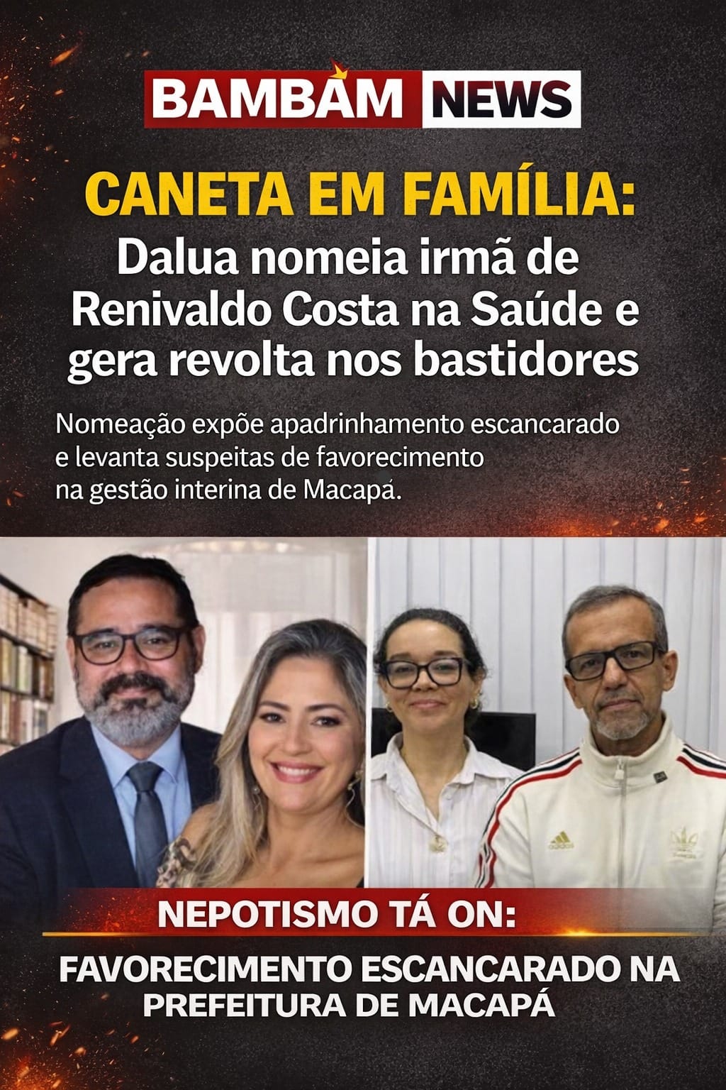 Em março de 2026, DaLua nomeou para a Secretaria Municipal de Saúde de Macapá Renilda Costa, que não chega sozinha ao cargo: ela é irmã de Renivaldo Costa porta-voz da prefeitura , figura conhecida nos bastidores políticos. A nomeação acendeu o alerta imediato nos corredores do poder e entre servidores da própria rede municipal.