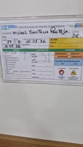 Segundo o relato, Michel encontra-se na Enfermaria D, leito 6, enfrentando um quadro clínico considerado grave. Ele já é paciente de uma doença crônica, a Espondilite, e, durante o período recente, teria desenvolvido outras complicações, incluindo Gastrite, Cálculo renal, Esteatose hepática e uma lesão pulmonar com início de Pneumonia.
