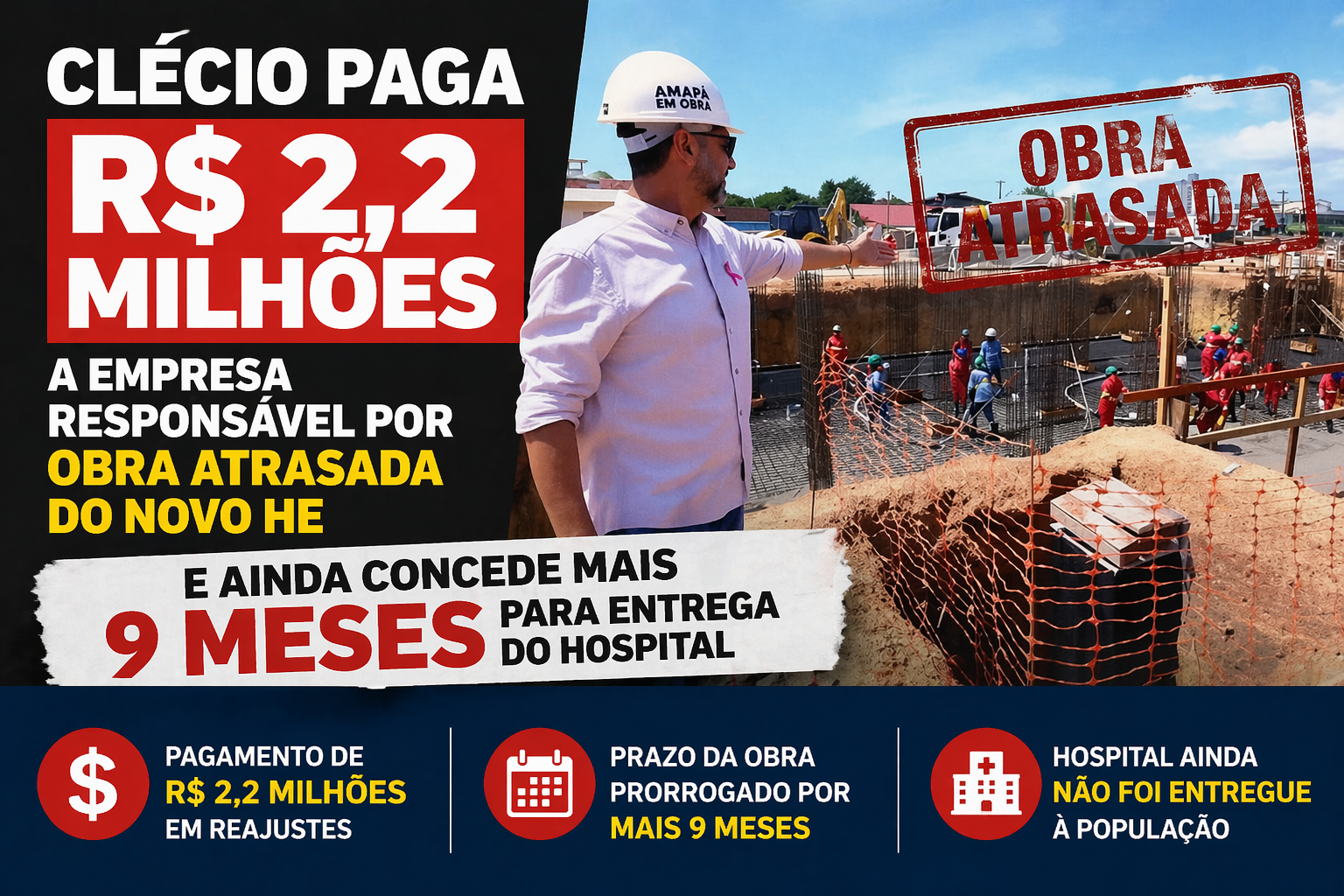 A construção do Novo Hospital de Emergência Estadual, em Macapá, se transformou em um retrato preocupante da gestão pública: obra atrasada, prazo estendido e custo maior para a população pagar.