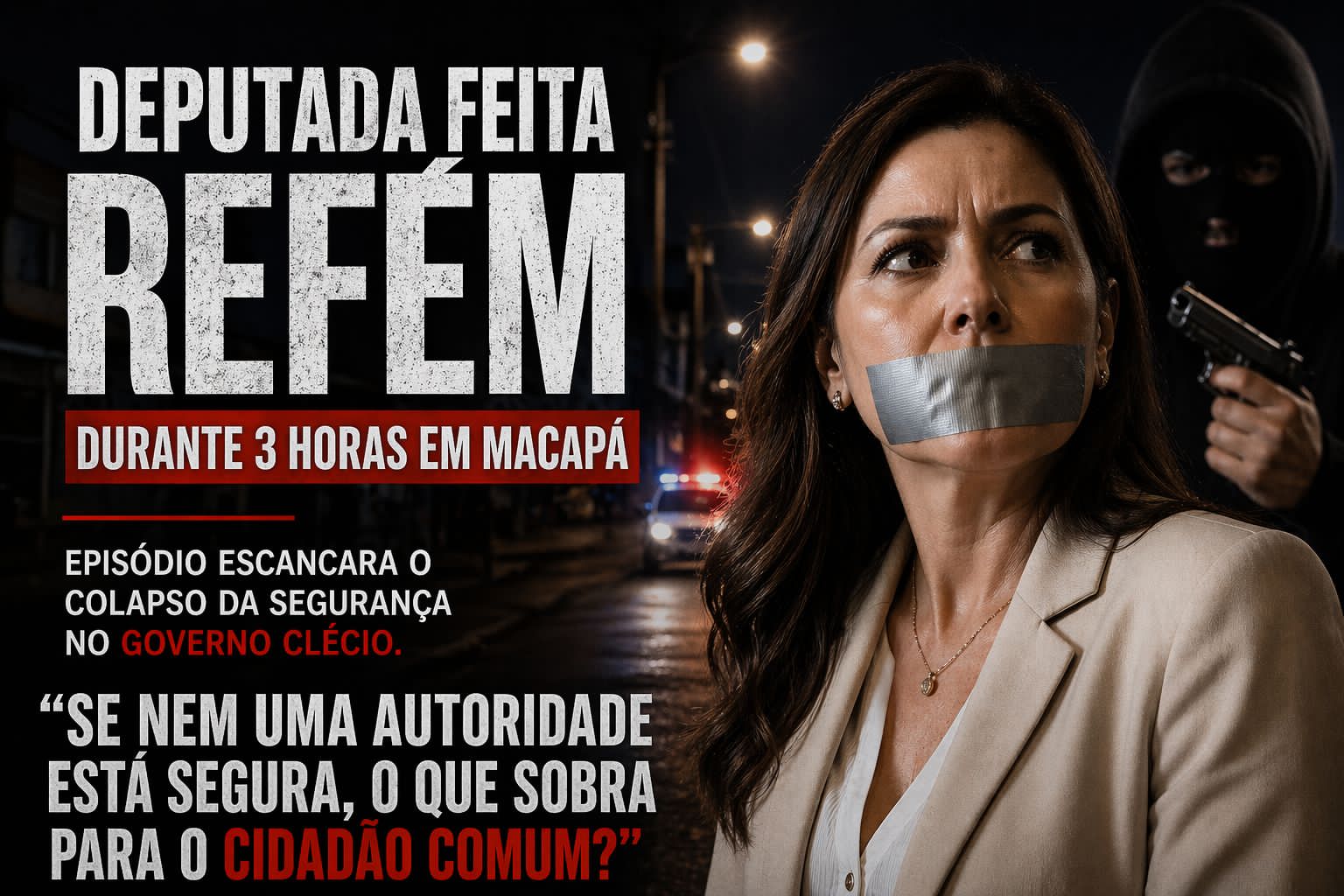 Uma noite que deveria ser comum se transformou em cenário de terror para uma parlamentar amapaense em Macapá. Segundo informações preliminares, a deputada teria sido mantida sob o controle de uma quadrilha por aproximadamente três horas, durante uma ação criminosa que resultou no roubo de celular e bens de alto valor.